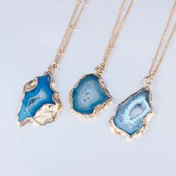 The Bonnie Natural Geode Irregular Slice Blue Agate Necklace is the perfect accessory for various occasions: