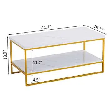 Bonnlo Faux Marble Gold Coffee Table, 41.7" Marble Coffee Table White and Gold Coffee Table Marble Top Coffee Table White Marble Coffee Table with Storage for Living Room Rectangular Coffee Table