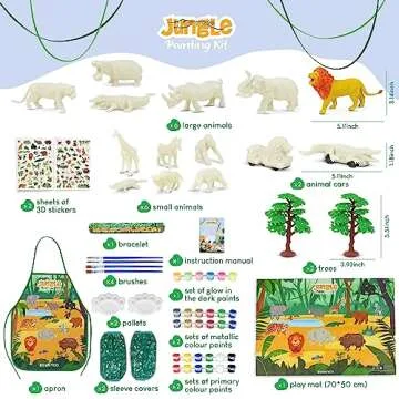 Unleash your child’s creativity with the BONNYCO Animal Toys for Kids Painting Kit! This vibrant and engaging arts and crafts set is designed to entertain and educate children ages 3 to 12, providing an immersive experience that combines fun and learning. Complete with 16 figurines, your little ones can embark on a safari-inspired adventure, painting their favorite animals in a variety of brilliant colors. The kit includes a comprehensive range of art supplies: from primary to metallic...