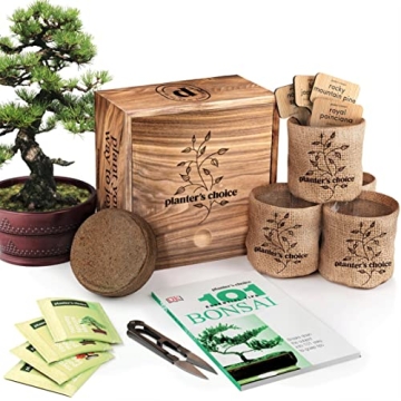 Show more Discover the art of bonsai cultivation with our Bonsai Starter Kit, the ultimate DIY gardening gift that brings together nature and creativity! This complete 18-piece garden kit is beautifully packaged in a wooden gift box, making it a thoughtful present for any plant enthusiast, whether they are a seasoned gardener or just starting their green journey. Included are four unique seed packets featuring premium species: Rocky Mountain Pine, Royal Poinciana, Blue Jacaranda, and Norway Spruce – each selected for their high germination rates, ensuring a successful start to your bonsai experience.