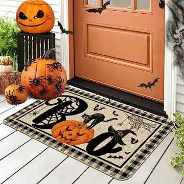 Bonsai Tree Halloween Door Mats 17x29 Inch, Welcome Mats Outdoor - Pumpkins, Black Cat Decorative Front Door Decorations
