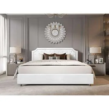 Show moreIntroducing the **BONSOIR Bed Frame**, an elegant and versatile low profile platform bed designed to elevate your bedroom experience. With a chic tufted faux leather headboard that is both stylish and functional, this bed frame eliminates the need for a box spring or bed skirt, providing ultimate convenience and aesthetic appeal. Its modern design seamlessly fits various decor styles, making it the perfect choice for any bedroom layout. The durable construction supports a weight limit of 1000 lbs, ensuring stability and longevity. Whether you favor a thick or thin mattress, this bed frame accommodates all kinds with ease, ensuring unmatched comfort and style.