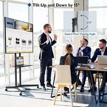 Show moreElevate your viewing experience to the next level with the BONTEC Mobile TV Cart, specifically designed to offer unparalleled versatility and convenience for those who love entertainment on the go. This sleekly designed rolling TV stand accommodates a wide range of display sizes, supporting televisions from 32 to 85 inches with utmost ease. Equipped with an adjustable height feature, ranging from 40.02 inches to 59.72 inches, you can customize your screen position to suit your preferences, ensuring a comfortable and enjoyable viewing experience. Its tilt feature also enables you to angle the screen up or down by 15 degrees, allowing for further fine-tuning of your viewing angle. Whether you're hosting movie nights or presentations, this mobile TV cart is your perfect companion.