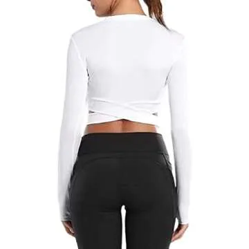 Introducing the ultimate workout companion that combines style and practicality! This unique crew neck crop top features a beautiful tummy cross design that accentuates your waistline, giving you that enviable slim look. With its thumb holes, you can enjoy extra warmth and coverage during colder days, making it perfect for a range of activities. Crafted from a high stretch material consisting of 92% Polyester and 8% Spandex, this top is designed to move with you, allowing...