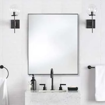 Show moreTransform your living space into a sanctuary of elegance with the Bonverre 24x36 Inch Black Bathroom Mirror. This stunning rectangular mirror is expertly crafted with a premium aluminum frame, making it an ideal addition to any wall in your home—from the bathroom to the living room. The modern design not only captivates the eye but serves a practical purpose by reflecting light and enhancing the sense of space in your room. Made from high-quality imported mirror materials, it promises durability and a contemporary aesthetic that effortlessly blends with various decor styles.