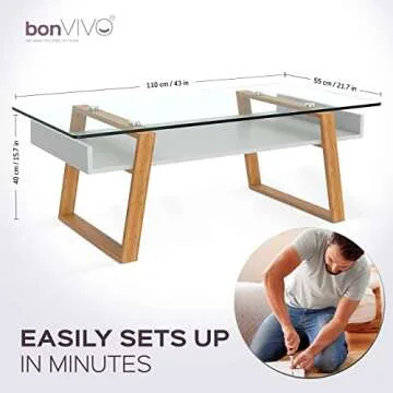 bonVIVO Modern Glass Coffee Table - Elegant Centerpiece for Living Room Decor with Tempered Glass Top, Sleek Design as A Gift for Home or Office Use, White