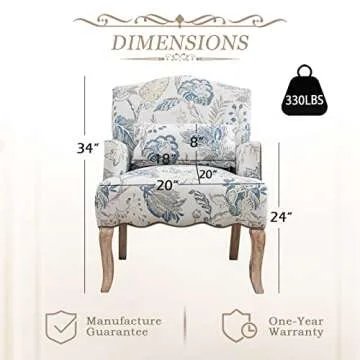 Show more Introducing the perfect blend of elegance and comfort, the Lovely Pastel Floral Chair is designed to complement any home decor. Crafted from solid birch wood, this chair showcases a unique floral upholstery that is both stylish and functional. With the capacity to support up to 330 lbs, it promises durability without compromising comfort. The rolled arms and button tufted back enhance its traditional charm, making it an ideal addition to your living room or reading nook.