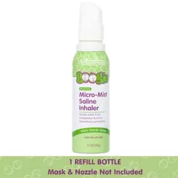 Show more Introducing the Boogie Micro-Mist Saline Inhaler Refill—an innovative solution designed to provide instant relief for nasal congestion in infants and children. This convenient refill pack includes one 1.7 oz can of ultra-fine saline mist, specifically crafted for those sniffles, sneezes, and seasonal allergies. The Boogie Micro-Mist is not just any nasal spray; it’s an advanced inhaler that requires no batteries or charging, making it perfect for on-the-go families. Whether in the comfort of your home, during travel, or out for a day of fun, this portable device ensures that your little one receives soothing relief whenever they need it.
