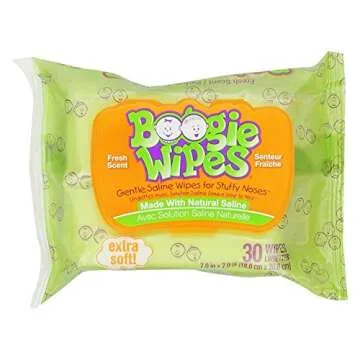 Show more Introducing Boogie Wipes - the ultimate solution for keeping your little one's nose clean and soothed. These gentle saline wipes are specially designed to tackle the tough job of cleaning snot and boogers without causing irritation. Made with a natural saline solution, Boogie Wipes not only help dissolve mucus but also wipe away dirt and germs effectively. They are perfect for use on noses, faces, fingers, and toes, making them a versatile addition to your child's hygiene routine.