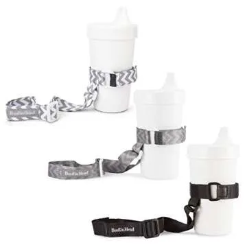 BooginHead SippiGrip Sippy Cup Strap & Baby Bottle Holder, Black & Chevron , 3 Count (Pack of 1)