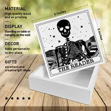 Book Lover Desk Decor Wooden Box Sign, The Reader, Book Worm Nerd Decor for Home Bedroom Office Bookish Book Reader Librarian Decoration Book Lover Gifts for Women Men Teen Girls