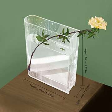Show more The Book Shaped Vase is a stunning and unique decorative piece that adds an innovative touch to your home. With its creative and eye-catching design, this vase is not just a container for your favorite flowers and plants, it's a conversation starter! Made from thick clear glass, this vase boasts durability while also being incredibly easy to clean and maintain, ensuring it remains a timeless centerpiece in your decor.
