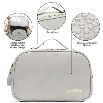 This versatile bag functions beautifully as a makeup pouch or daily storage organizer, perfect for anyone from busy professionals to casual travelers. Whether you're heading out for a weekend getaway or using it for daily grooming needs, this bag is a practical yet chic choice that makes for a thoughtful gift for women of all ages. At BOOMRICH, we are committed to ensuring you have a pleasant shopping experience and stand by our product's quality with dedicated customer support.