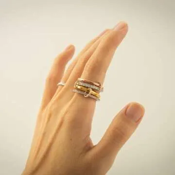 Bopiu Gold Stackable Rings for Women Non Tarnish, Dainty Stackable CZ Cubic Zirconia 18k Gold Plated Rings, Gold Knuckle Women Rings Set (Gold, 7)