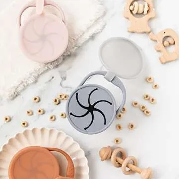Boppabug | Toddler Snack Cup with Attached Lid | Collapsible Silicone Snack Container | Toddler Spill Proof Snack Catcher (Pebble)