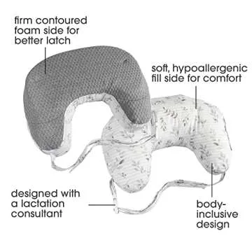 Boppy Nursing Pillow Best Latch, Gray Pennydot Leaf Stripe, Lactation Consultant Created, Firm Contoured and Plush Sides for Breastfeeding Options, Padded Belt, Plus Sized to Petite, Machine Washable