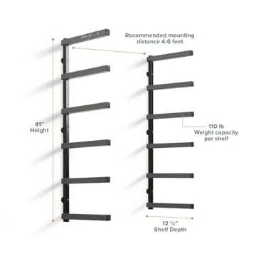 Bora Portamate Wood Organizer and Lumber Storage Metal Rack with 6-Level Wall Mount – Indoor and Outdoor Use, PBR-006B