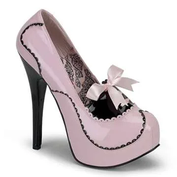 Introducing the Bordello by Pleaser Women's Teeze-01 Platform Pump, the ultimate footwear choice for the glamorous woman who is ready to take on the world with style. These platform pumps are not just shoes; they are a statement piece designed to blend elegance with a playful touch. The striking black/pink patent finish sets a bold tone, ideal for those who embrace their confidence and love to stand out from the crowd. With a jaw-dropping 5 3/4-inch heel...