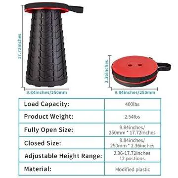 Show moreIntroducing the innovative Boreeman Upgraded Folding Stool - your ultimate companion for outdoor adventures and home comfort! This telescopic stool is expertly designed with a patented fish scale structure using modified plastic materials, offering unparalleled strength and rigidity. With a remarkable load capacity of 400lbs, it ensures you have a dependable seat wherever you go. The lightweight design, weighing in at just 2.54 pounds, makes it a breeze to carry—perfect for hiking, camping, or even just lounging around the house!