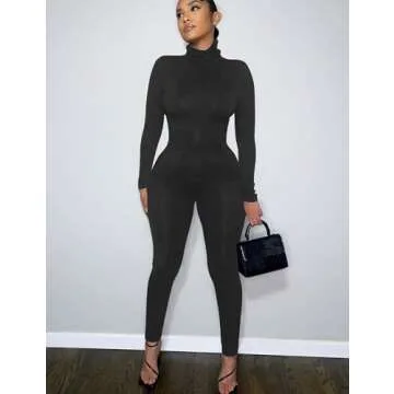 BORIFLORS Long Sleeve Jumpsuit for Women Sexy Turtleneck One Piece Bodycon Rompers Clubwear