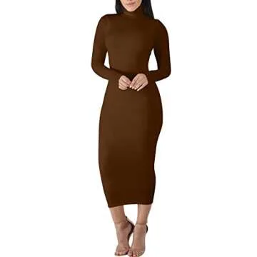 BORIFLORS Women's Sexy Basic Long Sleeve Turtleneck Bodycon Party Long Pencil Dress,Medium,Coffee
