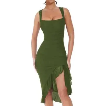 Show more If you’re searching for a stunning, versatile dress that is bound to turn heads, look no further than this fabulous ruffle dress. Designed with party vibes in mind, this mesh dress boasts irregular ruffle hemline and a stylish square neck that complements a range of body types. Made from a soft, breathable, and high-stretch double-lined fabric, it ensures comfort while accentuating your curves. This midi-length dress features a sophisticated back zipper for an easy fit, making it perfect for all occasions.