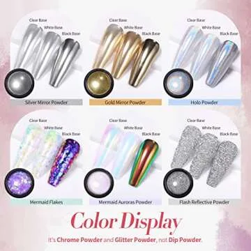 When compared to other nail powders on the market, BORN PRETTY chrome pigments stand out for their rich color payoff and superior glossy finish. While many products may boast a holographic effect, few provide the breadth of styles from reflective to auroras and mermaid flakes, making BORN PRETTY the preferred choice for those looking for diversity and quality in one package.