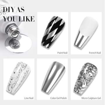 BORN PRETTY Metallic Painting Gel Silver Painted Gel Nail Polish 3D Metal Painting Gel Drawing Mirror Nail Gel Polish Glossy Soak Off DIY Nail Art Manicure Vanish 10ML