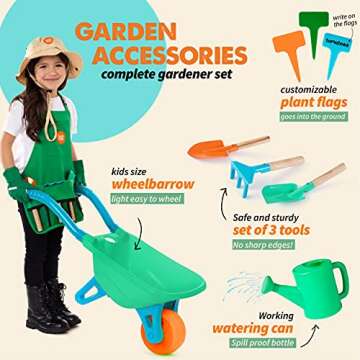 Born Toys Premium Kids Gardening Tool Set - Wheelbarrow, Apron & More!