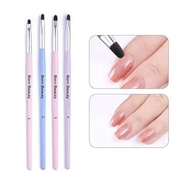 BornBeauty 4pcs Cuticle Nail Cleaning Brush Pink Blue Gel Nail Art Brush Round Handle Powder Dust Clean Pen Manicure Nail Art Tool (4Colors)