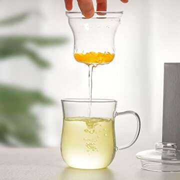 Borosilicate Glass Tea Set, 3-Piece Heat Resistant Teapot with Deflector and Lid, Ergonomic Handle - Ideal for Brewing Loose Leaf and Flower Teas, Glass Teacups, 10 oz (300 ml)
