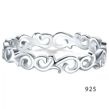 BORUO 925 Sterling Silver Ring Celtic Knot Heart High Polish Tarnish Resistant Eternity Wedding Band Stackable Ring Size 9
