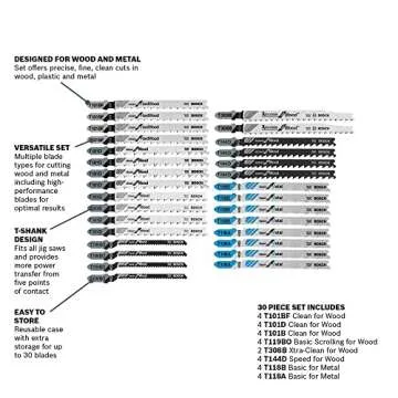 BOSCH T30C T-Shank Multi-Purpose Jigsaw Blades, 30 Piece, Assorted, Jig Saw Blade Set for Cutting Wood and Metal