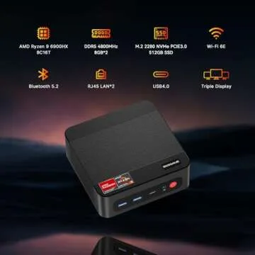 BOSGAME P3 Mini PC Desktop Computers, AMD Ryzen 9 6900HX, 16GB DDR5, 512GB PCIe 4.0 SSD, Windows 11 Pro, Dual LAN 2.5G/Wi-Fi 6E/BT5.2, 4K Triple Display, Compact Silent PC for Gaming, Office, Design