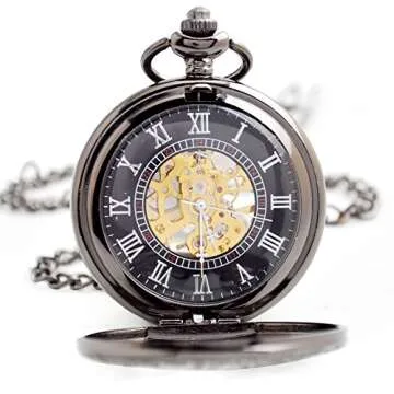 Show moreStep into a world of vintage charm with the BOSHIYA Vintage Mechanical Pocket Watch. This exquisite timepiece showcases a unique Steampunk Gear Design that perfectly blends elegance and smart fashion. Crafted with attention to detail, its distinct skeleton dial presents a mesmerizing view of the intricate golden movement beneath, all framed in a stylish black engraved cover. This isn't just a watch; it's a statement piece that exudes sophistication, making it not just functional but also an eye-catching accessory you’ll cherish.
