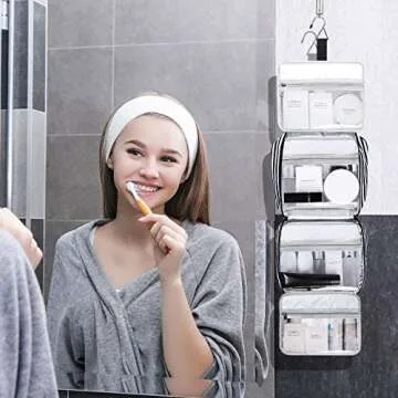 The built-in anti-slip metal hook adds a touch of convenience, allowing you to hang the toiletry kit from a towel rack or hook, transforming your toiletries into an easily accessible display. This feature saves you space and helps keep your essentials organized and at your fingertips.