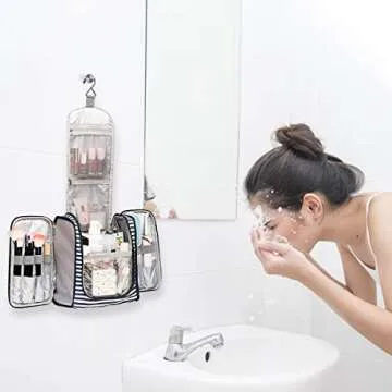 Bosidu Hanging Travel Toiletry Bag,Large Capacity Cosmetic Travel Toiletry Organizer for Women with 4 Compartments & 1 Sturdy Hook,Perfect for Travel/Daily Use/Christmas