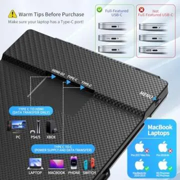 BOSII Laptop Screen Extender Portable - 14 Inch Triple IPS FHD 1080P HDMI/USB-A/Type-C Extended Monitor for Laptops (Maximum Length: 15.74") Compatible with Windows Mac Travel Work