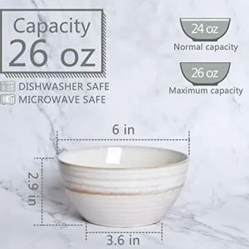 Show more Introducing the Bosmarlin Ceramic Cereal Bowl Set, beautifully crafted to elevate your dining experience while providing the practicality you desire. With a generous size of 26 oz, these bowls are perfectly proportioned for everything from hearty soups and vibrant salads to comforting cereals and fresh fruits. The exquisite design guarantees that you can serve your favorite dishes without worrying about spills or mess, making them ideal for family dinners or casual meals.
