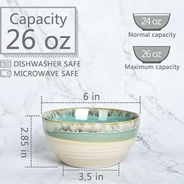Introducing the Bosmarlin Ceramic Soup Bowl Set of 4, designed with both functionality and aesthetics in mind. These beautifully crafted bowls are not just a feast for the eyes; they are perfect companions for all your culinary needs. Each bowl holds an ample 26 oz capacity, making them ideal for serving generous portions of soup, cereal, salads, oatmeal, and much more. The 6-inch diameter offers a well-proportioned size that prevents spills while elevating your dining experience.
