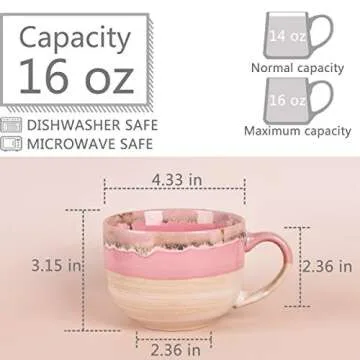 Show more Introducing the epitome of elegance and functionality, our stunning ceramic mug is designed to elevate your beverage experience. With a generous capacity of 16 oz, this mug outshines the competition, ensuring you have enough space for your favorite drinks, whether it’s coffee, tea or hot chocolate. Crafted from high-quality, lead-free, and cadmium-free ceramic, you can rest assured that this product is safe for your health while offering durability and sturdiness for long-lasting use.