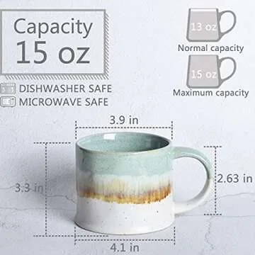Bosmarlin Medium Ceramic Coffee Mug Set of 2, 15 oz, Big Stoneware Tea Cup for Office and Home, Dishwasher and Microwave Safe (Green, 2)