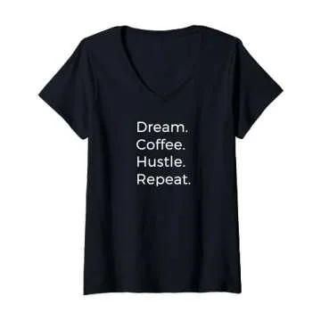 Show moreIntroducing the Boss Entrepreneur GirlBoss Dream Coffee Hustle Repeat V-Neck T-Shirt – the perfect blend of versatility and inspiration that every aspiring entrepreneur needs in their wardrobe. Designed for those who embrace the hustle and strive for greatness, this empowering shirt features a motivational quote: "Dream, Coffee, Hustle, Repeat." Each wear serves as a gentle yet powerful reminder to persevere and keep ambitions alive. Crafted by Polka Dot Pixie Shop, you can expect nothing less than quality and style, ensuring you not only look good but feel good too.