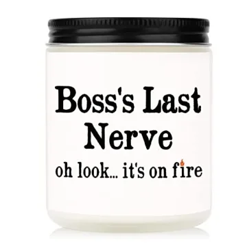 Show moreExpress your gratitude and appreciation for your boss in a way that's both humorous and thoughtful with our unique aromatherapy candle. This striking candle is more than just a gift; it's a statement piece adorned with the witty and relatable quote, 'Boss's Last Nerve... Oh look... it's on fire.' The playful design captures the essence of the workplace dynamic and makes it a perfect tribute to that special person who leads your team with dedication and commitment. Handcrafted with care, this candle features premium essential oils that fill the room with the soothing scent of lavender, promoting a relaxing atmosphere where stress melts away. Imagine your boss unwinding after a long day surrounded by the calming glow and delightful fragrance of this candle.