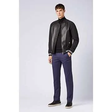 Show moreDiscover unparalleled elegance and comfort with the BOSS Hugo Men's Rice Slim Fit Chino Pants. Made from premium quality stretch cotton gabardine, these chinos are designed to provide a sleek, modern silhouette that flatters your physique while ensuring maximum comfort throughout the day. With a regular rise that adapts to various body types, these dark blue chinos are a versatile addition to any wardrobe, effortlessly transitioning from casual outings to semi-formal events. The 46 size is perfect for those who appreciate a snug yet comfortably fitted look.