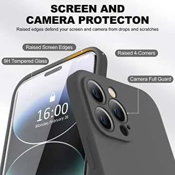 BossKiss Compatible with iPhone 14 Pro Max Case 6.7 inch, Premium Liquid Silicone Case [Velvety Touch] [2 Pcs 9H Tempered Glass Screen Protector], Camera All-Round Protection Case, Space Grey