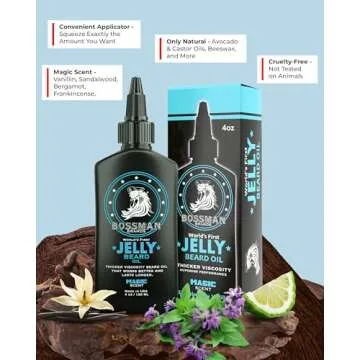 Bossman Jelly Beard Oil for Men (4 oz, Magic Scent) – Softens, Moisturizes & Conditions with Natural Ingredients