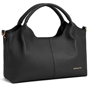 Show more Introducing the BOSTANTEN Genuine Leather Purses for Women – the epitome of elegance meets functionality in this exquisite designer handbag. Specially crafted for those who cherish both style and practicality, this crossbody satchel features a refined structure with two main compartments, separated by a secure central zip pocket that keeps your essentials meticulously organized. With its manageable size of 12.6" (L) x 5.1" (W) x 7.1" (H), this purse makes it easy to carry everything you need while maintaining a chic silhouette. Made from genuine leather, it offers a luxurious feel and durability that ensures it will be a staple in your wardrobe for years to come.