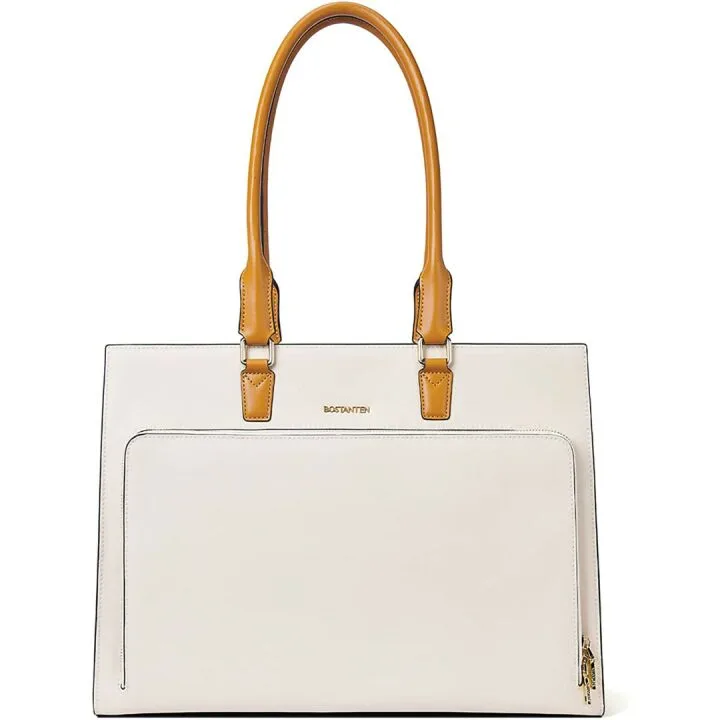 BOSTANTEN Vintage Leather Briefcase for Women - 15.6" Laptop Bag, Beige
