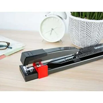 Show moreIntroducing the Bostitch Office Anti-Jam Long Reach Stapler—the ultimate tool for both office and creative tasks that demand precision and excellence. With a remarkable 12-inch throat depth, this stapler allows you to effortlessly staple even the largest booklets, making it ideal for presentations, reports, or any bulky documents. Its adjustable paper stop supports both standard and metric measurements, ensuring that no matter what size your project is, you can achieve the perfect staple placement every time. Plus, with a robust 20-sheet stapling capacity, this stapler is designed to keep up with your most demanding tasks without breaking a sweat.